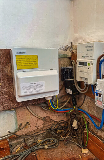 Professional replacement of outdated metre panels, repair of exposed wiring, damaged enclosures, missing protective covers, and circuit labelling issues.